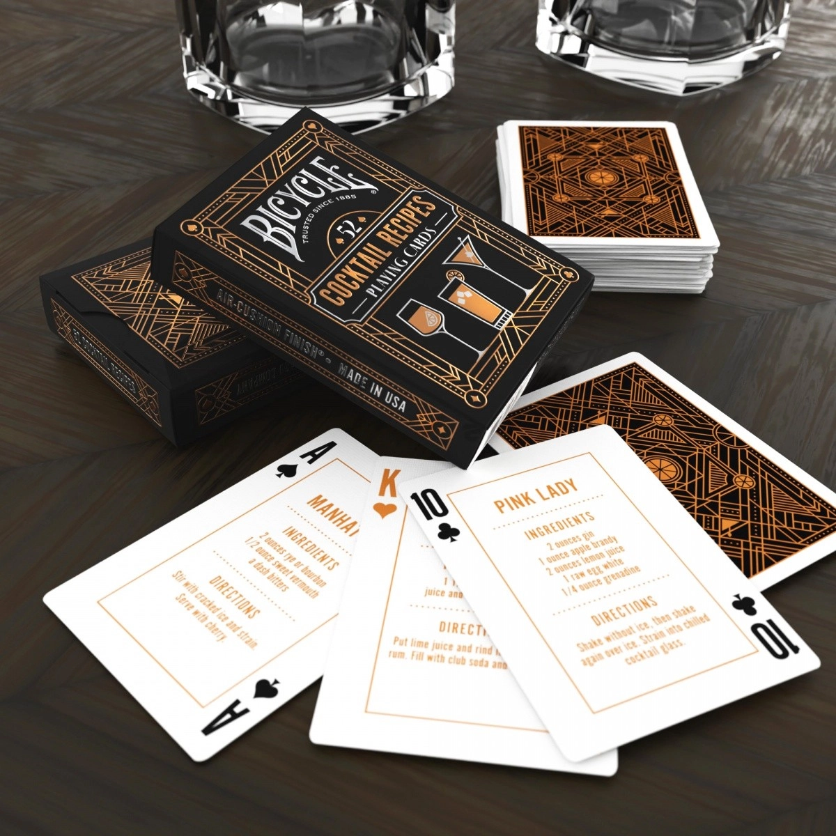 Verleihen Sie Ihrer nächsten Party einen Hauch von Eleganz und Spaß mit den Bicycle-Cocktail-Karten, inspiriert vom Stil des Großen Gatsby. Jede Karte enthält ein einzigartiges Cocktailrezept, sodass Ihre Möglichkeiten fast unbegrenzt sind.
