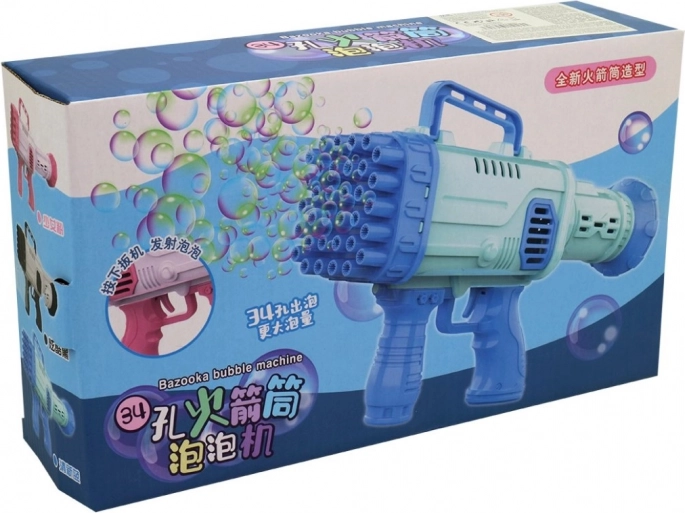 Entdecken Sie unglaublichen Spaß mit der Seifenblasenpistole, die 34 Öffnungen für maximale Blasenproduktion enthält. Erzeugen Sie bezaubernde Blasen und lassen Sie sich von der magischen Welt voller Farben von schwebenden Seifenblasen faszinieren.