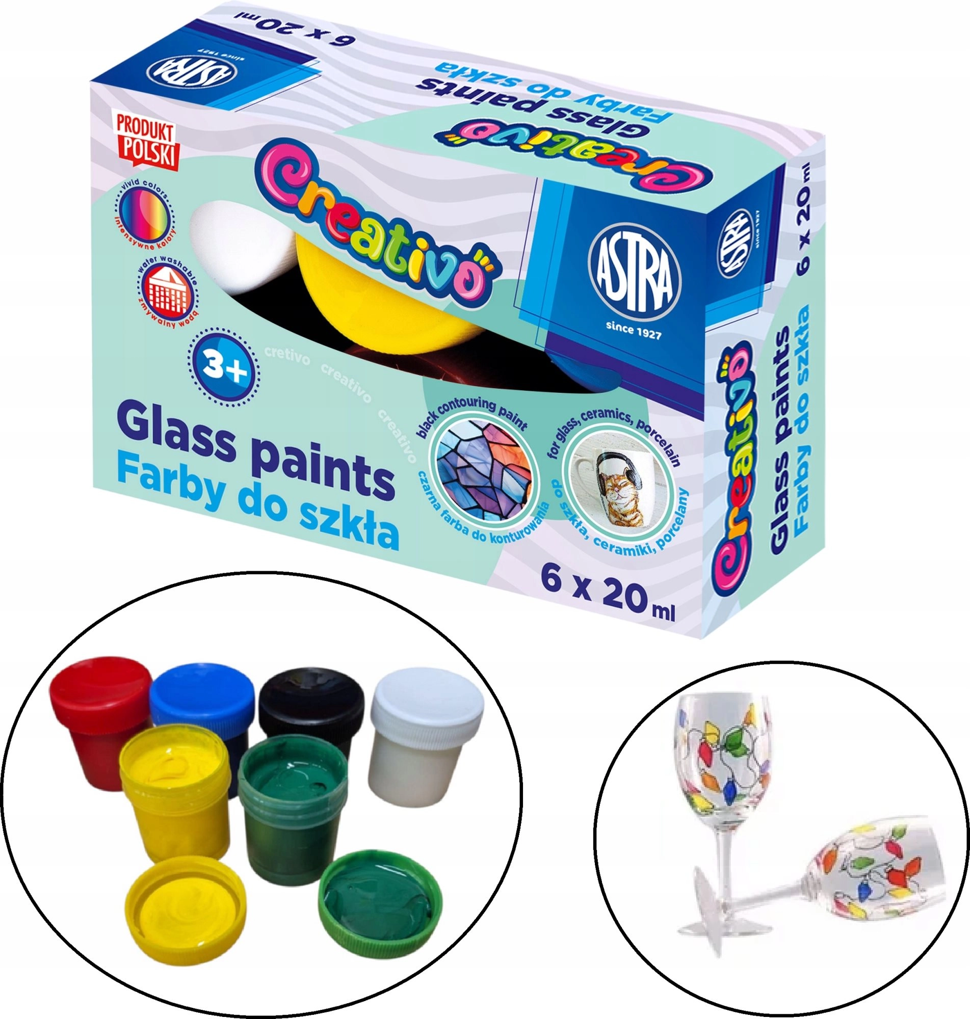 Entdecken Sie vielseitige, halbtransparente Glasfarben, mit denen Sie mühelos einzigartige Dekorationen auf Tassen, Vasen, Tellern und weiteren Haushaltsgegenständen gestalten. Das Set ASTRA CREATIVO bietet sechs praktische 20-ml-Tuben mit intensiven Farbtönen für effektvolle, handgemalte Motive.