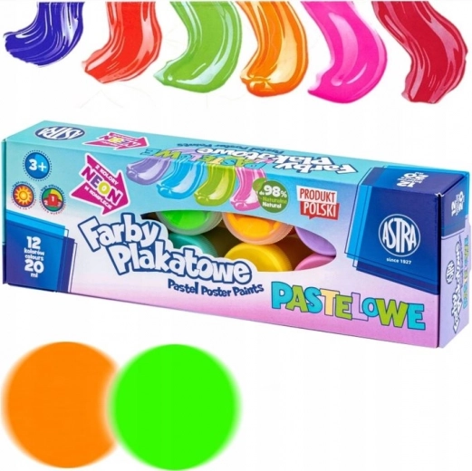 Das Set ASTRA Pastell-Temperafarben 12×20 ml ist eine hervorragende Wahl für kleine und große Kreative. Es bietet 2 Neonfarbtöne, hohe Deckkraft, ist wasserverdünnbar und hinterlässt nach dem Trocknen eine matte Oberfläche. Dank der Lichtbeständigkeit sind die Farben langlebig und ideal für Papier – für Schule und Zuhause.
