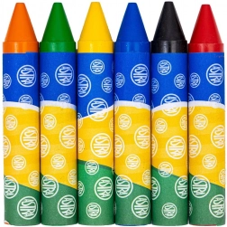 Die Stifte eignen sich für alle Arten von matten Papieren, dünner Pappe und Karton sowie für Holz und andere unebene Oberflächen. Die Packung mit 6 Stück im Jumbo-Format (Länge 10 cm) ist eine praktische Wahl für kleine und große Künstler.