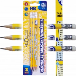Set aus drei ASTRA-Bleistiften mit der Härte HB und praktischem Einmaleins-Aufdruck erleichtert Lernen und Schreiben. Sie bieten einen ergonomischen, dreikantigen Schaft für einen bequemen Griff, eine hochwertige Mine 2,2 mm sowie ein praktisches Radiergummi am Ende. Das Holz stammt aus nachhaltig bewirtschafteten Wäldern.