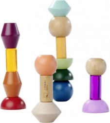 Diese speziellen geometrischen Blöcke erfordern etwas Geschick und motivieren hervorragend zur Konzentration. Aus den farbigen Teilen erkennen und legen Kinder 5 neue Formen, während die transparenten Acrylsteine den Bauwerken einen spannenden Kontrast verleihen.