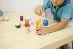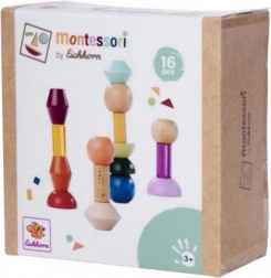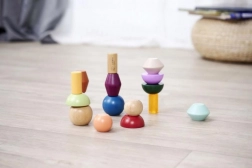 Die Blöcke bestehen aus hochwertigem FSC-zertifiziertem Holz und sind für Kinder ab 3 Jahren geeignet. Das Set unterstützt auf natürliche Weise die Montessori-Prinzipien – Sortieren, Stapeln und das Entdecken von Beziehungen zwischen Formen und Farben – und fördert zugleich die Feinmotorik sowie das räumliche Vorstellungsvermögen.