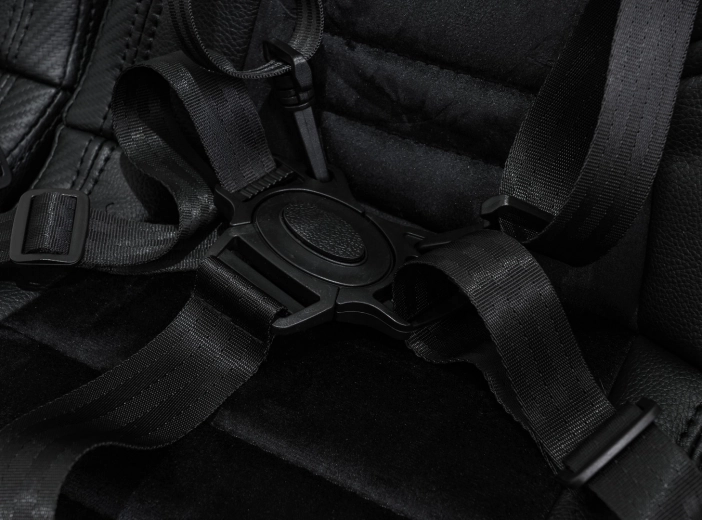 Ergonomische Zweisitzer-Sitze aus Ökoleder mit Veloursabsteppung bieten Komfort und Sicherheit. 3-fache Einstellung und Mehrpunktgurte halten kleine Fahrer fest an ihrem Platz.
