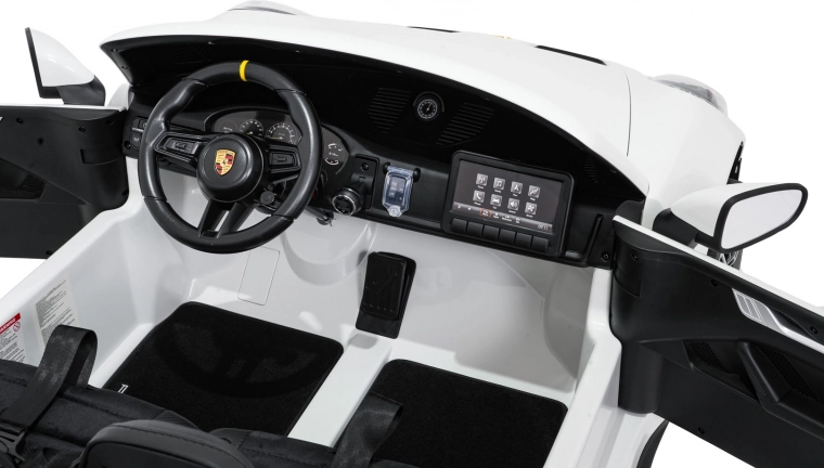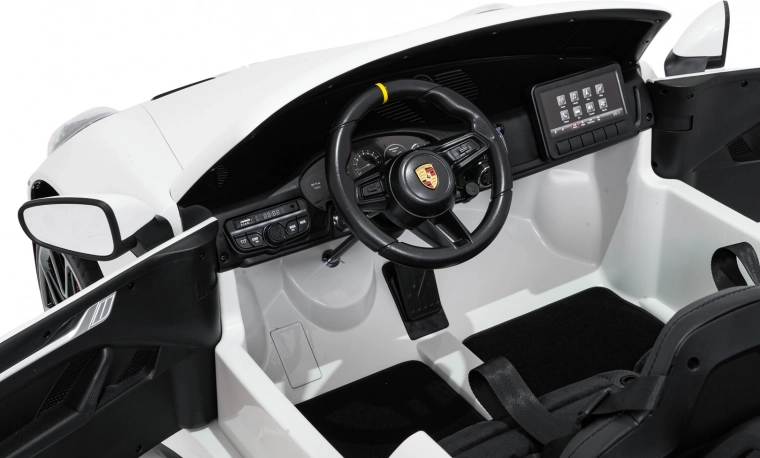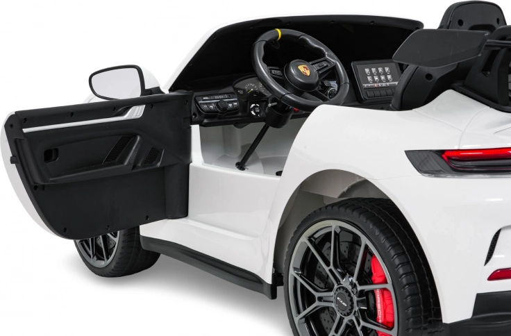 Erfüllen Sie den Kindertraum vom Sportwagen. Dieses zweisitzige Elektroauto im Stil des PORSCHE 911 GT3 bietet realistische Karosseriedetails, Sportsitze mit Mehrpunktgurten und beleuchtete LED-Scheinwerfer. Die leistungsstarke 24V-Batterie mit zwei leisen 2×280‑W‑Motoren sorgt für eine sanfte Fahrt auch auf längeren Strecken, während Softstart und zwei Geschwindigkeiten Komfort und Sicherheit erhöhen.