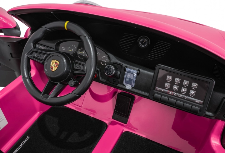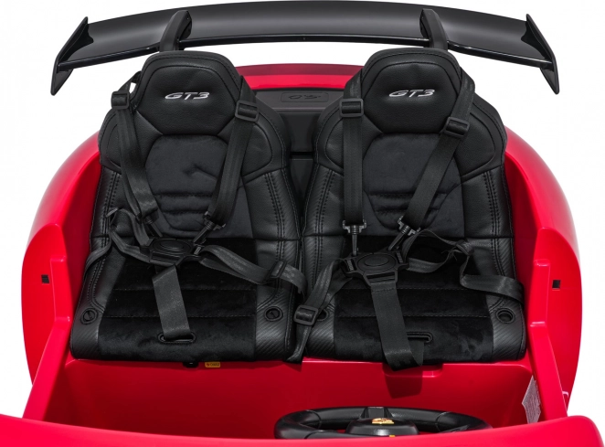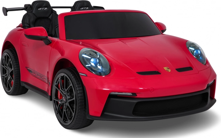Das stylische elektrische Kinderauto, inspiriert vom 911 GT3, bietet ein echtes Sporterlebnis für kleine Fahrer. Es verfügt über leistungsstarke 2× 280-W-Motoren, eine starke 24V 10Ah Batterie, weiche EVA-Räder für komfortables Fahren und eine unabhängige Federung vorne und hinten. Dank LED-Beleuchtung, öffnenden Türen, zwei Sitzen aus Kunstleder mit Gurten und einem umfangreichen Audio-Panel mit FM, Bluetooth, USB und MP3 genießen Kinder eine sichere, bequeme und spaßige Fahrt, während Eltern die 2,4-GHz-Fernsteuerung mit Stop-Taste zu schätzen wissen.