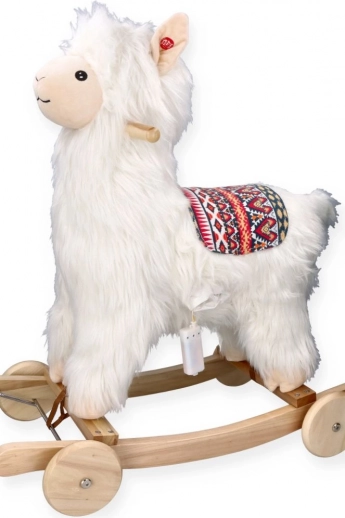 Dieses plüschige Schaukel-Alpaka mit Rollen vereint ein klassisches Schaukelspielzeug mit der Möglichkeit einer bequemen Fahrt. Kinder trainieren Gleichgewicht, Koordination und Grobmotorik, während sie ein sicheres und kreatives Spiel genießen. Die Tragfähigkeit von 50 kg sorgt für eine langfristige Nutzung auch für ältere Kinder.