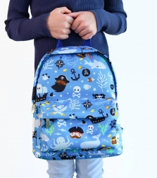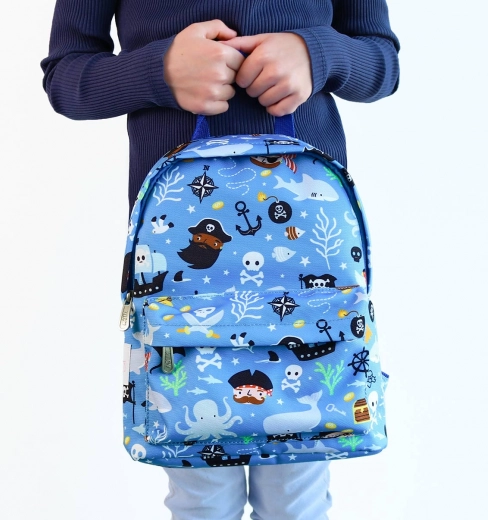 Den niedlichen Rucksack mit Piratenmotiv werden Kinder lieben, und Eltern schätzen die durchdachte Verarbeitung. Das Hauptfach fasst Snack, Flasche und Kleinigkeiten, während die vordere Reißverschlusstasche alles griffbereit hält. Für Ergonomie sorgen gepolsterte Schultergurte und eine bequeme Rückenpolsterung; der Brustgurt hilft, die Gurte auch beim Rennen auf den Schultern zu halten.