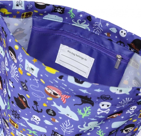 Leichter Kinderbeutel mit Piratenmotiv von A Little Lovely Company. Ziehkordel, innere Reißverschlusstasche. Ideal für Schule, Sport und Schwimmen.
