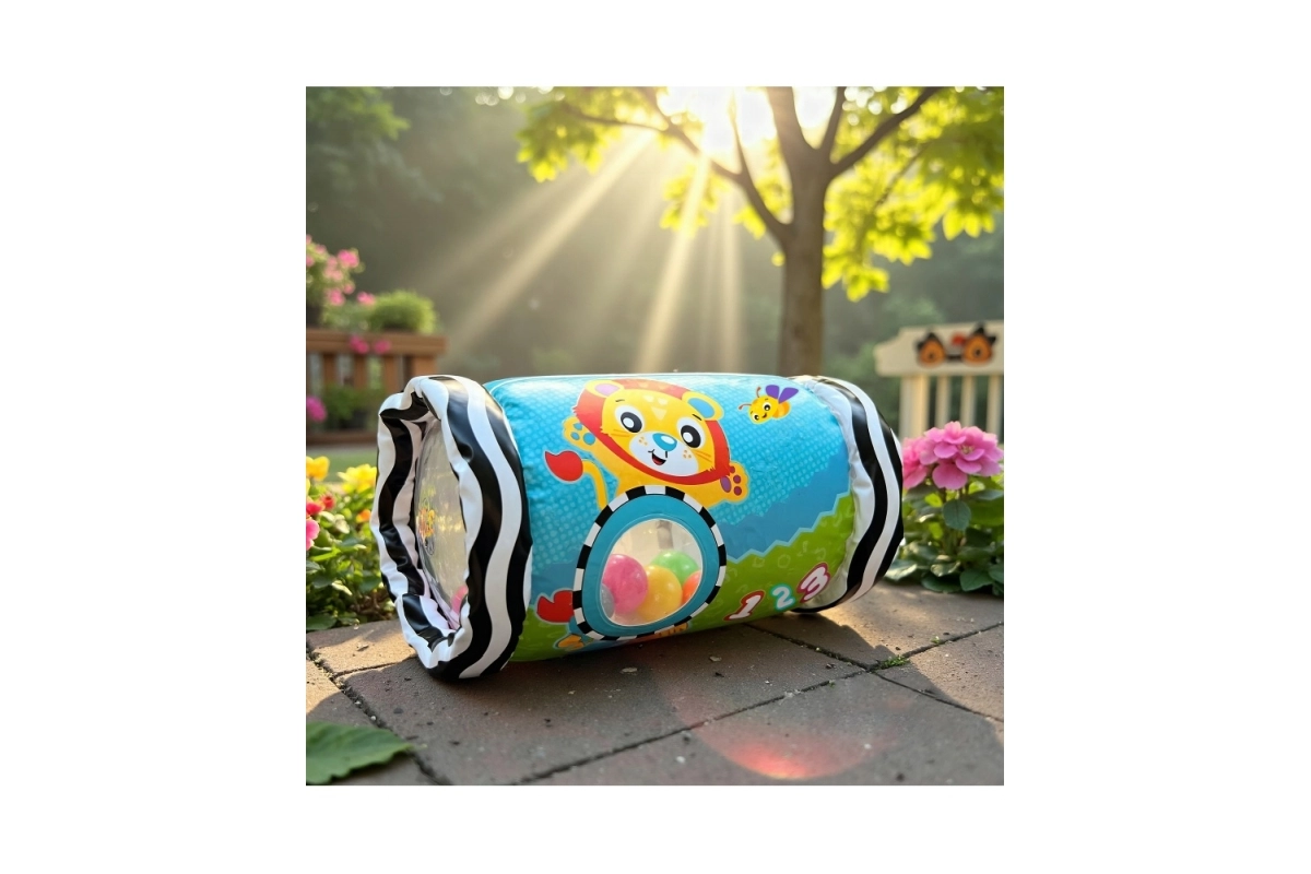 Die zylindrische Form rollt leicht, animiert das Baby zum Greifen, Drehen und Krabbeln und unterstützt so Grobmotorik und Koordination.