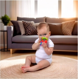 Drei weiche Beißflächen mit unterschiedlichen Texturen bieten Linderung beim Zahnen, während die kompakte Form der Schlüssel ideal für kleine Händchen ist. Das Spielzeug unterstützt so ganz natürlich die Feinmotorik, die Hand-Auge-Koordination und erste Greiffähigkeiten.