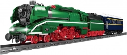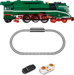Das Modell überzeugt durch präzise Details: große rote Räder, die schlanke Lokomotiv-Silhouette und stilvolle Farbakzente in Grün, Rot und Marineblau, ergänzt durch schwarze und silberne Elemente. Der Bau aus 2348 Teilen bietet stundenlangen Spaß und fördert zugleich technisches Denken und Geduld.