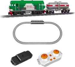Die Lokomotive wird von einem wiederaufladbaren 3,7-V-Li-Akku betrieben und mit dem beiliegenden RC-Controller gesteuert (Vorwärts-/Rückwärtsfahrt). Hochwertiges ABS-Material sorgt für Widerstandsfähigkeit und präzise Verbindung der Teile, wodurch der Aufbau stabil und unterhaltsam ist.