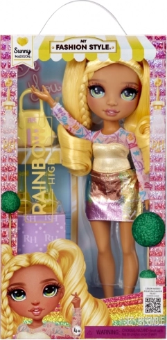 Lerne Sunny aus der Rainbow High Fashion Style Kollektion kennen – eine Stilikone, die von Kopf bis Fuß strahlt. Sie hat langes, leicht kämmbares gelbes Haar, detaillierte Glasaugen und zarte Wimpern. Enthalten sind stylische Outfit-Teile, passende Schuhe und eine Handtasche. Dank der Gelenke für leichtes Posieren ist sie ideal zum Styling, Geschichtenspielen und Sammeln. Alter 3+.