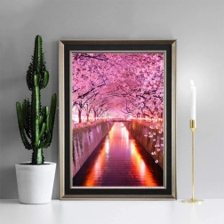 Dieses kreative Diamantmalerei-Set führt Sie Schritt für Schritt zu einem beeindruckenden Bild mit Kirschblüten über einem Wasserweg. Die hochwertige selbstklebende Leinwand mit Farbsymbolen ermöglicht ein einfaches Platzieren der Steinchen und einen reibungslosen Kreativprozess. Das fertige Bild besticht durch einen zarten Glanz, der Ihrem Zuhause eine besondere Note verleiht.