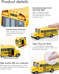 Der interaktive Schulbus WOOPIE im Maßstab 1:20 begeistert kleine Fahrzeug- und ÖPNV-Fans. Realistische Details, Frontlichter und Fahrgeräusche ziehen Kinder ins Spiel, während die öffnenden Türen kreative Szenen und Rollenspiele unterstützen. Dank des Schwungrad- (Reibungs-)antriebs genügt ein Anschubsen und der Bus fährt von selbst mehrere Meter.