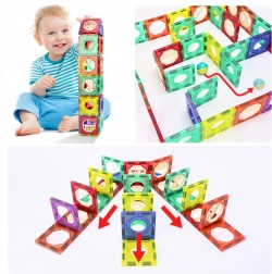 Dieses Lernbaukasten-Set bietet unzählige Konstruktionsmöglichkeiten – von einfachen Bahnen bis hin zu komplexen und stabilen Bauten. Dank der sicheren magnetischen Verbindungen lassen sich die Teile leicht verbinden und behalten ihre Form, sodass Kinder eine flüssige Fahrt der Kugeln sowie Experimente mit Geschwindigkeit und Richtung genießen können.