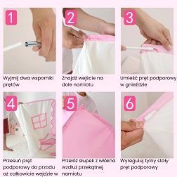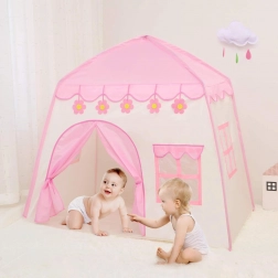Schaffen Sie für Kinder ihren eigenen magischen Ort. Dieses geräumige Haus-Zelt in einem sanften Rosaton bietet eine sichere Ecke zum Lesen, Spielen und Ausruhen. Dank der einfachen und leichten Konstruktion lässt es sich sowohl im Haus als auch im Garten leicht aufstellen und ebenso schnell wieder zusammenlegen.