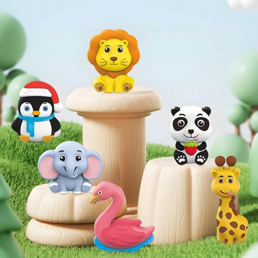 - Form mit Motiven: Pinguin, Giraffe, Löwe, Flamingo, Panda, Elefant, Baum