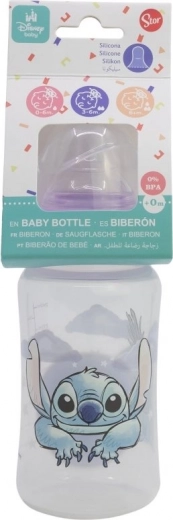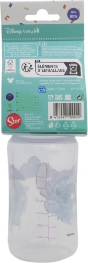 Praktisches Antikolik-Fläschchen mit Lilo & Stitch-Motiv für komfortables Füttern von Neugeborenen. Bietet ein Fassungsvermögen von 240 ml, eine Silikonsauger für natürliches Saugen und ein integriertes Antikolik-System, das das Risiko von Unwohlsein reduziert. BPA-frei und konform mit EN 14350.