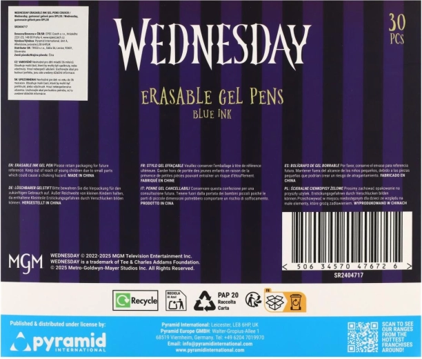 Entdecken Sie den unterhaltsamen und praktischen radierbaren Gelstift mit Wednesday-Motiv. Kein Durchstreichen mehr – Fehler lassen sich einfach mit der speziellen Radierkappe entfernen. Ideal für die Schule, stressfreies Schreiben und für alle Lizenz-Fans.