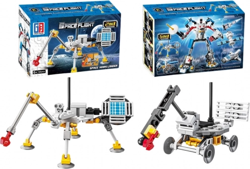 Konstruktionsset Weltraum 2-in-1 – Raketen, Antennen und Roboter (44–54 Teile)