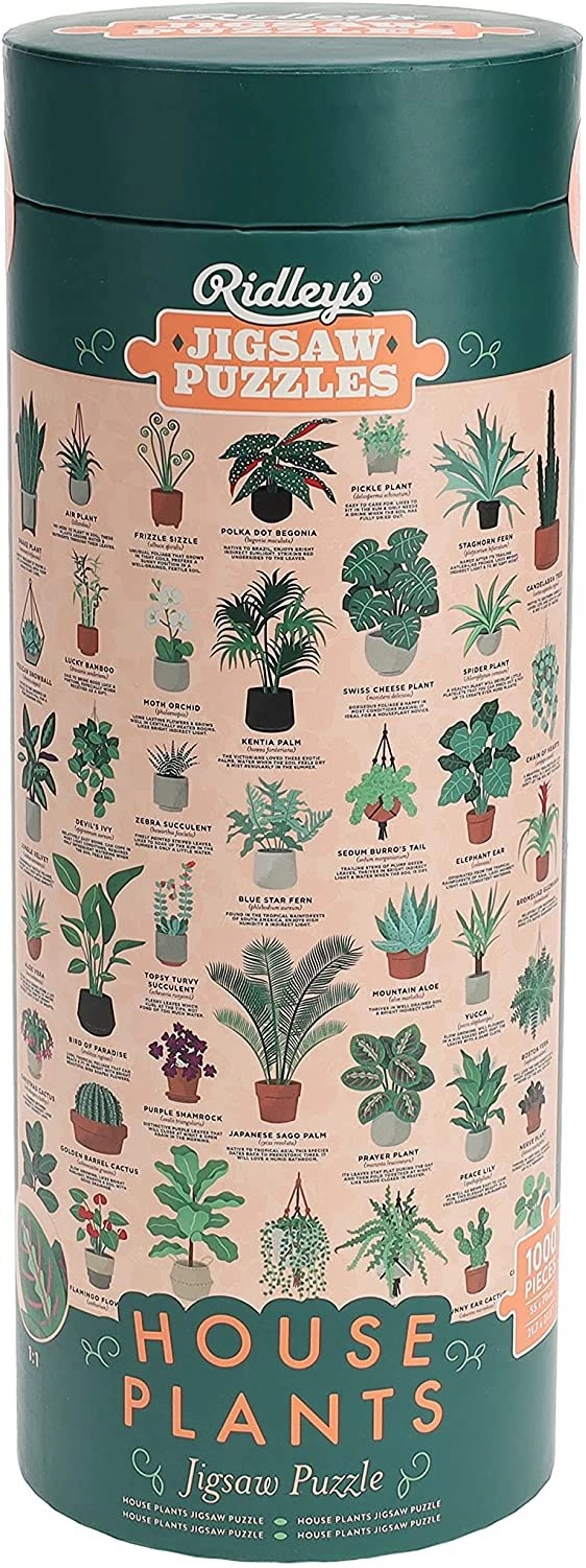 Entdecken Sie ein wunderschönes Puzzle für alle Pflanzenliebhaber: Das 1000-teilige „Zimmerpflanzen“ von RIDLEY'S GAMES zeigt über 30 Pflanzenarten mit Fakten und Pflegetipps (Texte auf Englisch). Im Set ist außerdem eine Motivvorlage enthalten. Größe nach dem Zusammensetzen ca. 55 × 70 cm.