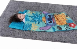 Bequemer Kinderschlafsack mit STITCH-Motiv, ideal für Übernachtungen bei Freunden, Sommerlager und Familienausflüge. Bietet ein angenehmes Material, praktische Maße von 140 × 60 cm und ein spielerisches Design, das Kinder lieben werden.