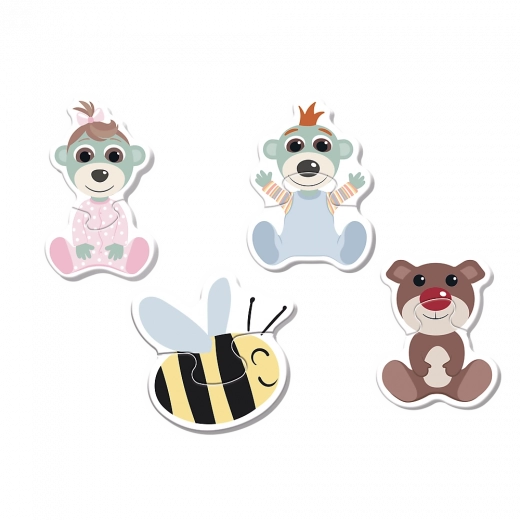 Erstes Puzzle für die Kleinsten: Set mit 4 Puzzles, jeweils aus 2 großen und stabilen Teilen, ideal für Kinder ab 1 Jahr. Farbige Illustrationen mit niedlichen Babys und einer fröhlichen Biene fördern die visuelle Wahrnehmung und motivieren zum Spielen. Große und starke Teile lassen sich von kleinen Händen leicht greifen – ohne Frust, nur Freude am Entdecken.