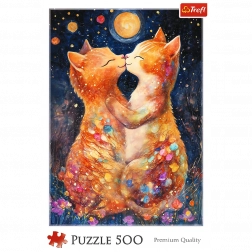 Romantisches Puzzle mit dem Motiv zweier Kätzchen bei einem Kuss im Mondschein, mit 500 Teilen und einem fertigen Bildmaß von 48 × 34 cm. Hergestellt in Polen aus hochwertigen Materialien mit Blick auf die Umwelt und mit speziellem kalandriertem Papier für weniger Reflexionen und ein angenehmeres Puzzeln.
