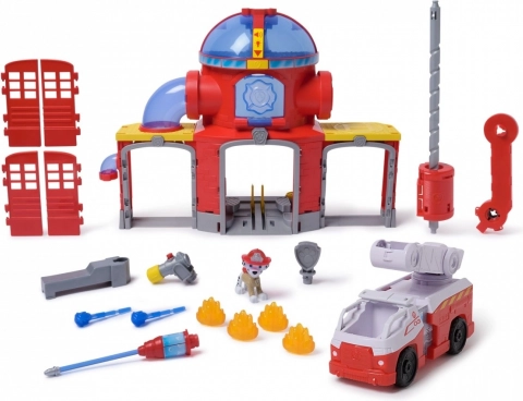 Diese detailreiche Feuerwehrwache aus PAW Patrol bringt Kindern realistische Action wie in der Serie. Es erwarten sie Lichter und Geräusche, eine spiralige Stange mit Aufzug für den schnellen Einsatz und eine Station zum „Wasser nachfüllen“ vor der Mission. Marshall ist bereit, in seinem Feuerwehrauto auszurücken und mit abschießbaren Wasserprojektilen die Flammen zu bekämpfen.