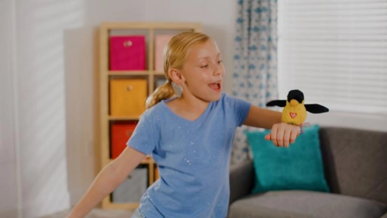 Die niedliche Žluva aus der Steppos Happy Yappers Kollektion ist ein interaktiver Plüschvogel, den du dir ans Handgelenk klippst – und schon wartet jede Menge Spaß. Er wiederholt die Stimme, singt ein Vogellied und schlägt mit den Flügeln – der ideale Freund zum Spielen und für die Fantasie.