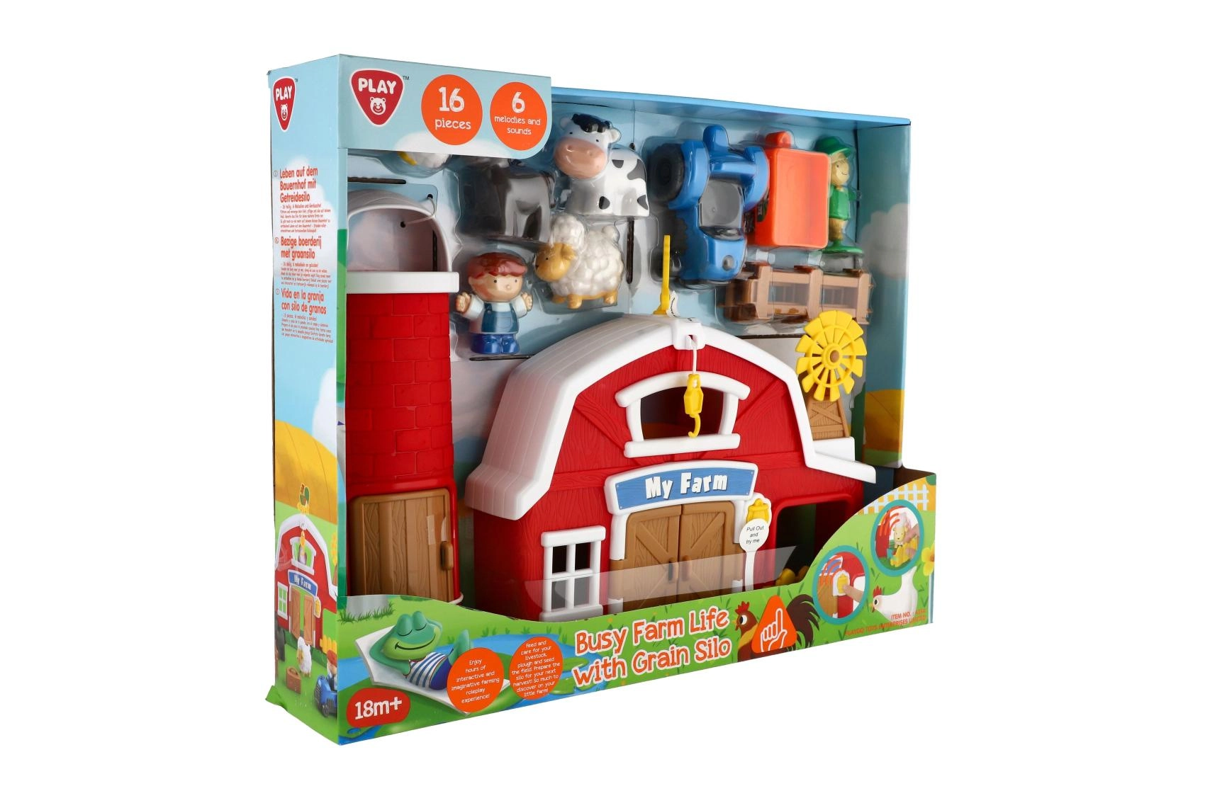 Dieser spielerische Bauernhof bringt Kindern das Landleben direkt ins Kinderzimmer. Die bunte Scheune mit Getreidesilo, aufklappbaren Elementen und zahlreichem Zubehör inspiriert zu kreativen Geschichten. Nach dem Einschalten ertönen Bauernhofgeräusche, die die Sinneswahrnehmung fördern und Kinder ins Spiel hineinziehen.