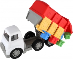 Dank Freilauf fährt das Auto leicht und gleichmäßig über den Boden, sechs Räder sorgen für Stabilität und einen sicheren Betrieb. Das Spielzeug fördert Feinmotorik, Hand-Auge-Koordination sowie das Lernen der Mülltrennung in Spielform. Ideale Größe für Kinderhände: ca. 13 × 17 × 34 cm.