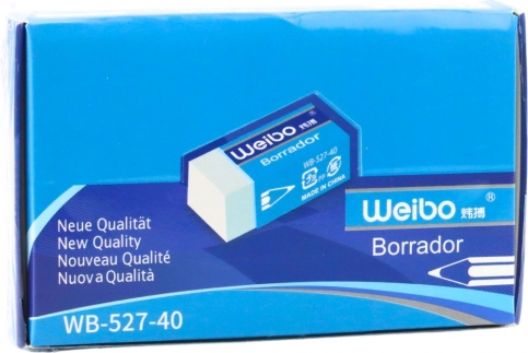 Der weiße Radiergummi WEIBO passt ins Federmäppchen, auf den Schreibtisch und zur kreativen Arbeit. Die weiche Zusammensetzung aus synthetischem Material sorgt für sauberes und präzises Radieren von Bleistift ohne Schlieren. Dank der latexfreien Ausführung ist er auch für empfindliche Nutzer sicher.