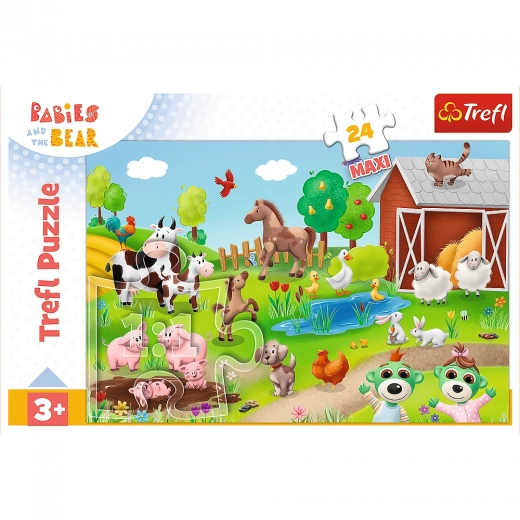 Großes Kinderpuzzle mit dem Motiv BOBASKI UND TIERE von Trefl enthält 24 extra große Teile für kleine Hände. Nach dem Zusammensetzen entsteht ein Bild mit den Maßen 60 × 40 cm. Hochwertige Materialien, spezielles kalandriertes Glanzpapier für bequemes Puzzeln und umweltfreundliche Produktion in Polen. Geeignet für Kinder ab 3 Jahren.