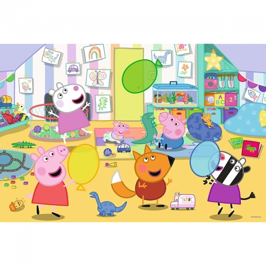 Entdecken Sie die Freude am Puzzeln für die Kleinsten mit der beliebten Heldin Peppa Pig. Extragroße Teile erleichtern die Handhabung und fördern die Entwicklung der Feinmotorik, Geduld sowie das Erfassen von Formen und Farben. Dank des speziellen kalandrierten Papiers mit reduzierten Reflexionen ist das Puzzeln angenehmer und die Augen ermüden weniger.