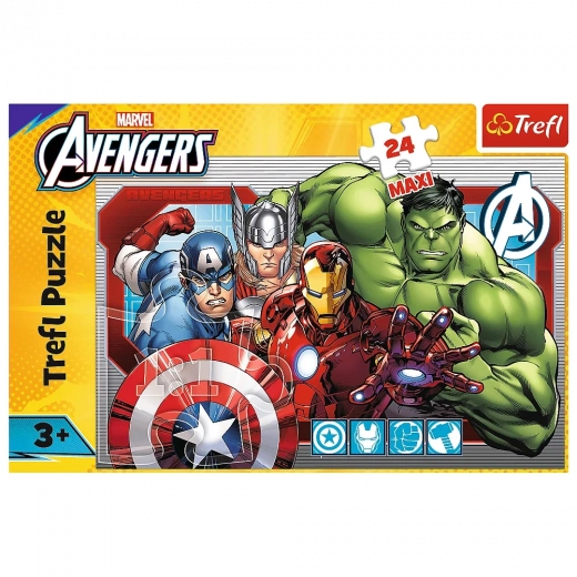 Kinderpuzzle mit Motiv von MARVEL The Avengers enthält 24 MAXI-Teile für einfaches Zusammensetzen. Nach dem Zusammensetzen entsteht ein Bild mit den Maßen 60 × 40 cm. Hergestellt aus hochwertigen und umweltfreundlichen Materialien, mit speziellem kalandriertem Papier für weniger Reflexionen und komfortables Puzzeln. Geeignet für Kinder ab 3 Jahren.
