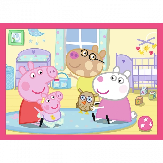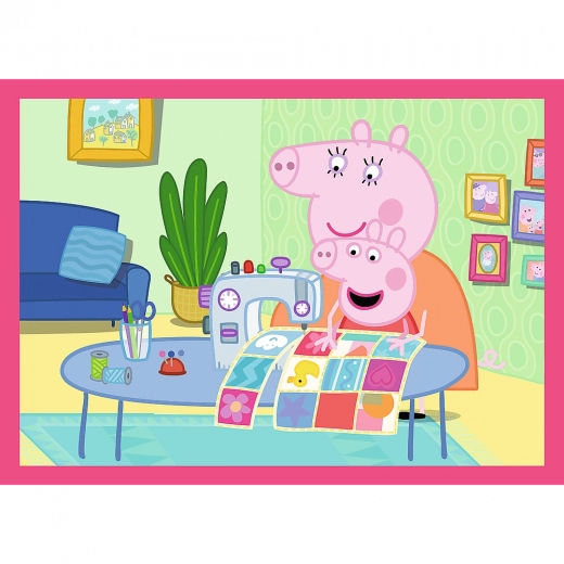 Entdecken Sie die Faszination des Puzzelns mit den beliebten Helden aus der Serie PEPPA PIG. Dieses 4-in-1-Set bietet vier separate Bilder mit unterschiedlicher Teilezahl und fördert damit schrittweise die Entwicklung von Motorik, Geduld und logischem Denken. Jedes fertiggestellte Bild hat die Größe 285 × 205 mm – ideal für kleine Hände.