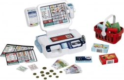 Im Set enthalten sind Geldscheine, Münzen und eine Zahlungskarte. Kinder können Geld in die Schublade legen, Münzen einwerfen und den Einkauf per Karten-„Piep“ abschließen.