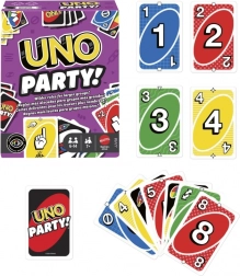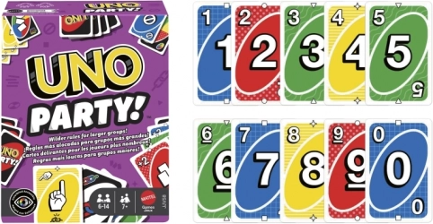 UNO Party bringt das bewährte Gameplay des beliebten UNO in einer größeren und lauteren Ausgabe – ideal für Partys, Familienfeiern und Abende mit Freunden. Dank 168 Karten (1,5× so viele wie im klassischen Deck) können mehr Spieler mitmachen und die Spannung hält länger an.