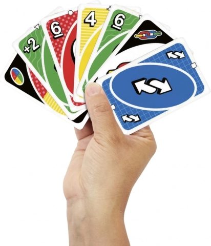 Diese Edition fügt neue interaktive Regeln hinzu, die Tempo und Spaß erhöhen, zum Beispiel die Karte „Zeige auf jemanden“, bei der jeder Spieler auf eine andere Person zeigt – und diese muss eine Karte ziehen. Sie suchen Übereinstimmungen nach Farbe, Zahl oder Symbol und versuchen, als Erster alle Karten loszuwerden. Vergessen Sie nicht, „UNO!“ zu rufen, wenn Sie nur noch eine Karte haben!