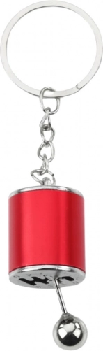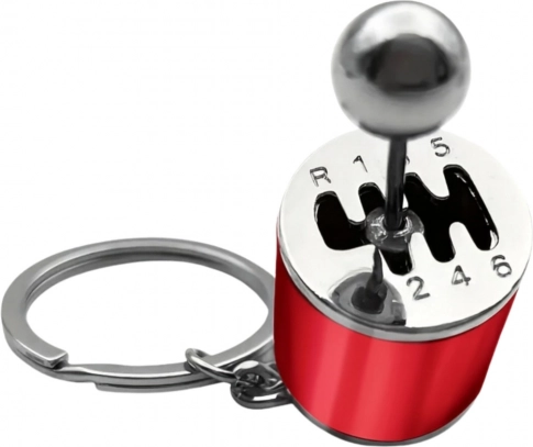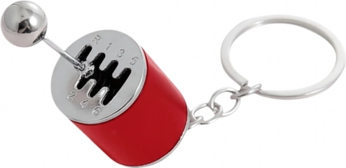 Der originelle Anhänger in elegantem Rot verbindet praktische Verwendung mit attraktivem Design. Die präzise Verarbeitung des Metallkörpers und der oberen Platte mit Gangmarkierungen wird ergänzt durch den funktionsfähigen Schalthebel, der sich tatsächlich im Schaltschema bewegen lässt.