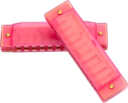 Leichte und robuste rosa Mundharmonika mit 10 Kanzellen, ideal für Kinder und Anfänger. Sie bietet eine diatonische Stimmung für leichtes Erlernen von Melodien, angenehme Handhabung und sicheres Spielen. Inklusive transparentem Schutzetui für saubere und praktische Aufbewahrung.