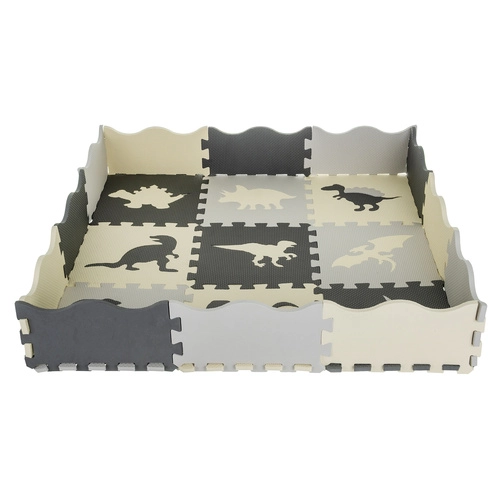 Eine weiche und sichere Schaumstoffmatte aus Puzzleteilen schafft Kindern einen gemütlichen Spielbereich. Dank der dicken, stoßdämpfenden Schicht schützt sie vor Kälte und Stürzen, die wasserabweisende Oberfläche lässt sich leicht reinigen und die passgenauen Elemente halten stabil zusammen. Bunte Dinosauriermotive fördern die Entwicklung von Kreativität, Koordination sowie das Erlernen von Formen und Farben.
