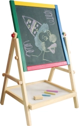 Diese hölzerne, zweiseitige und multifunktionale Tafel ist eine großartige Hilfe für den täglichen Spiel- und Lernspaß. Kinder können Schreiben, Zeichnen und erste Rechenaufgaben auf der magnetischen weißen Seite mit Trockenabwischfunktion üben oder mit Kreide auf der traditionellen schwarzen Fläche gestalten. Dank der geräumigen Ablage sind alle Utensilien stets griffbereit.