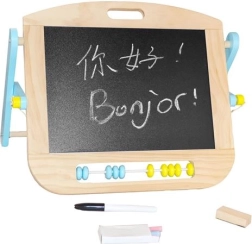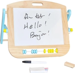 Die multifunktionale Tischtafel ist ein großartiges Hilfsmittel für erste Zeichnungen, Schreiben und Lernen. Dank der zwei Flächen wechseln Kinder leicht zwischen Marker und Kreide, trainieren die Feinmotorik und fördern ihre Fantasie. Der integrierte zweifarbige Abakus unterstützt frühe mathematische Fähigkeiten.
