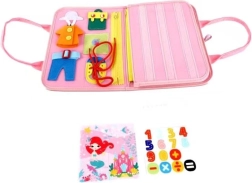 • Vielseitige Aktivitäten – Knöpfe, Schnallen, Reißverschlüsse, Klettverschlüsse, Schnürsenkel und weitere Elemente zum Trainieren von Griff und Selbstständigkeit.