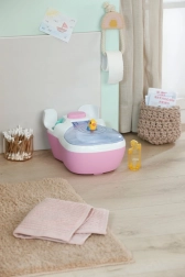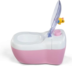 Die interaktive BABY born Toilette verwandelt die tägliche Pflege der Puppe in ein unterhaltsames Ritual. Sobald die Puppe auf dem Sitz Platz nimmt, ertönen realistische Plätschergeräusche, und wenn sie länger sitzen bleibt, starten eine witzige Melodie und anschließend das Spülgeräusch. Das motiviert Kinder zu einem spielerischen Training hygienischer Gewohnheiten.